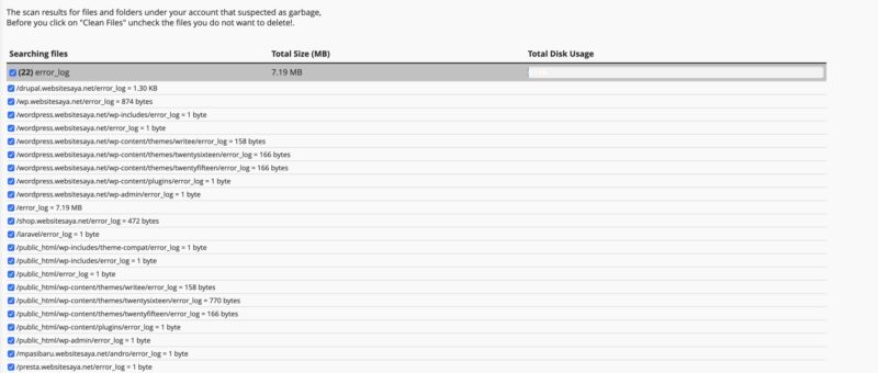 Now you can delete some of the files that cause hosting capacity to run out. We recommend checking and deleting files error_logand folders /.trash.